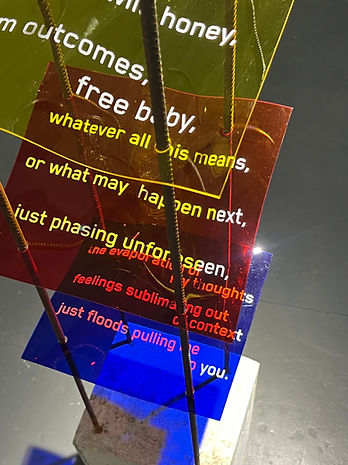 Das Projekt von Victor Ritter und Jorge Figueroa (Filthy Figs) beschäftigt sich mit der Neudarstellung von Figueroas Gedichten. In ihrer Zusammenarbeit stellen sie die Frage, wie man bestehende Werke immer wieder hinterfragt und verändert, um Platz für neue Gedanken und Perspektiven zu schaffen. Es geht darum, die eigenen „Darlings“ – also geliebte Elemente – loszulassen, um den Raum für innovative Ideen zu öffnen. Dieser Prozess des ständigen Anpassens und Überdenkens führt dazu, dass das Gedicht auf mehreren Ebenen neue Dimensionen bekommt. Die Auseinandersetzung mit dem Thema erfolgt nicht nur auf einer kreativen, sondern auch auf einer philosophischen Ebene, da es um die Kunst des Verzichts geht, um Platz für das Neue zu schaffen.